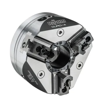 DURO-A — это трёхкулачковый патрон со сквозным отверстием, который зажимается автоматически (гидравлически) станком с ЧПУ. Применяется преимущественно для токарной обработки цилиндрических и дискообразных заготовок.