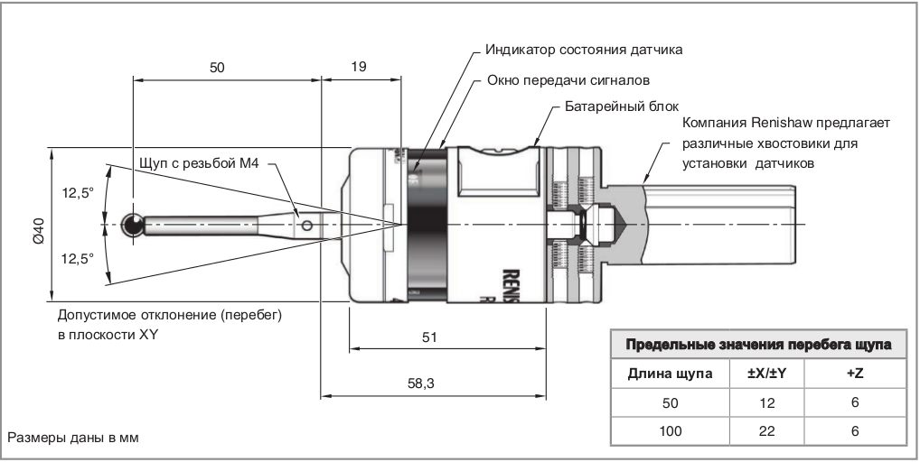 | Рекомендуемые щупы | Керамические, длиной от 50 до 150 мм | ||