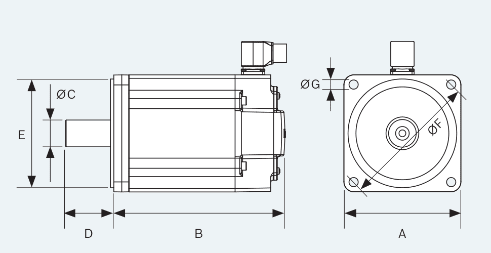 У двигателей MS2N010 размер разъема питания соответствует току двигателя. Таким образом, MS2N10 комплектуется штекерами М40, М58 или клеммной коробкой. Штекер энкодера для всех двигателей с подключением двойного кабеля завершается в M17. Все вилки являются поворотными и оснащены удобной быстрой блокировкой.